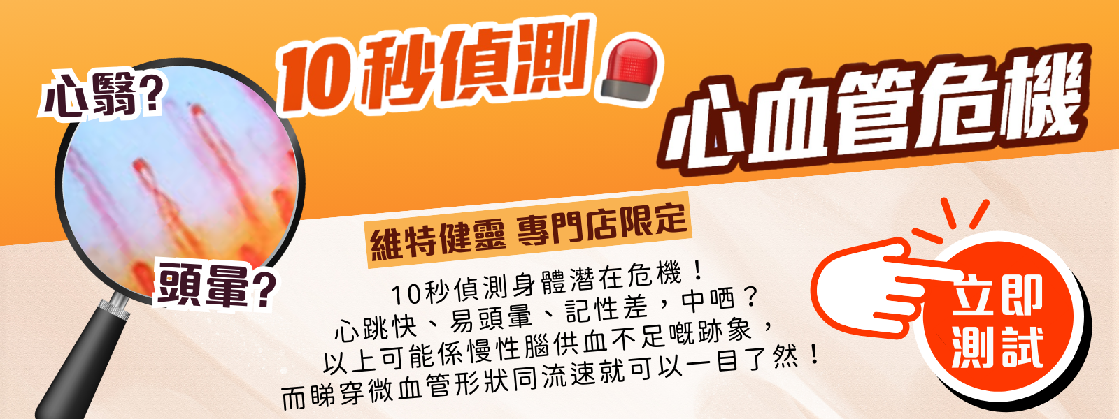 10秒偵測身體潛在危機!心跳快、易頭暈、記性差?以上可能係慢性腦供血不足嘅跡象,睇穿微血管形狀同流速,就可以一目了然!