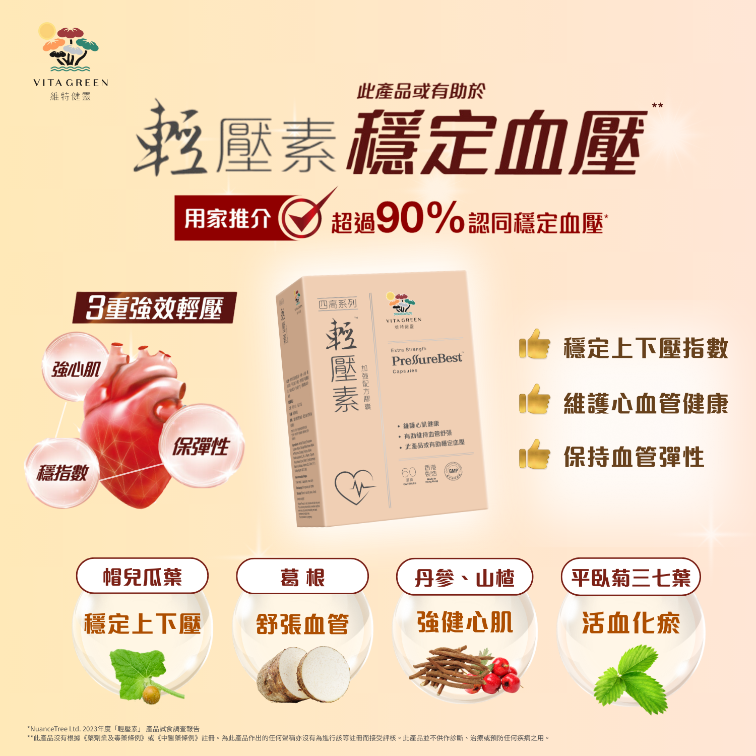 葛根有效成分抑制腎素過度上升,從而幫助放鬆血管,降低血管指數。科研實證, 帽兒瓜葉有效穩定上下指數, 減低血管肥油垃圾積聚, 舒張血管。
