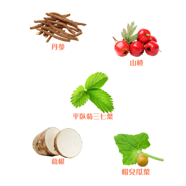 葛根、丹參、山楂、帽兒瓜葉、平臥菊三七葉
