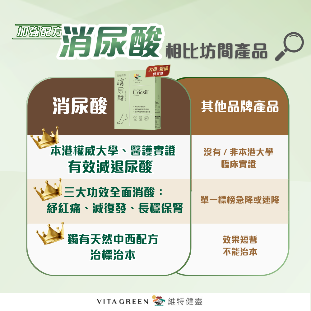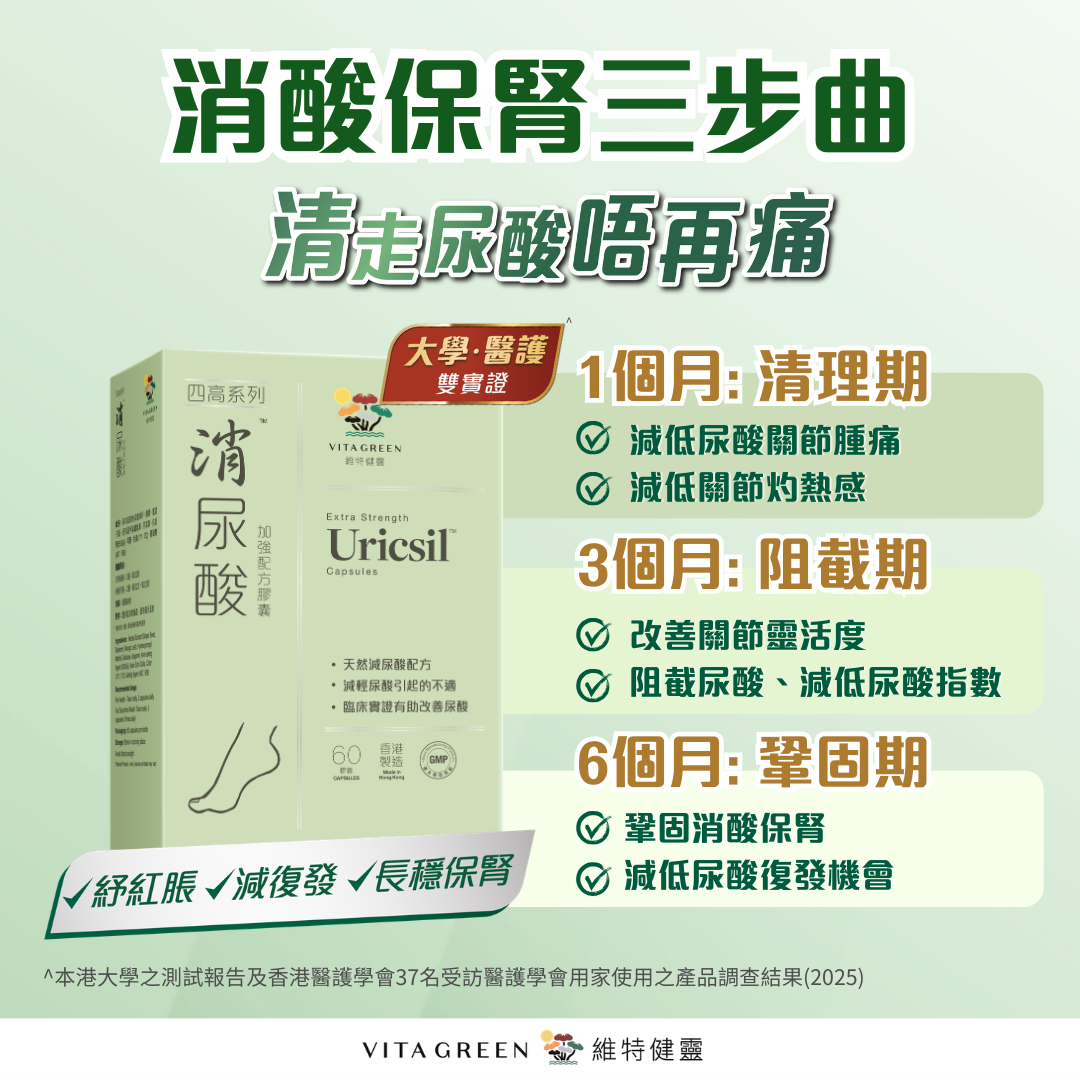 高尿酸致關節紅、脹、痛,主因是尿酸積聚在關節。人體內的尿酸約八成是來自身體分解代謝,餘下兩成由食物內的嘌呤轉化而成。所以高尿酸主要是身體代謝出現問題。